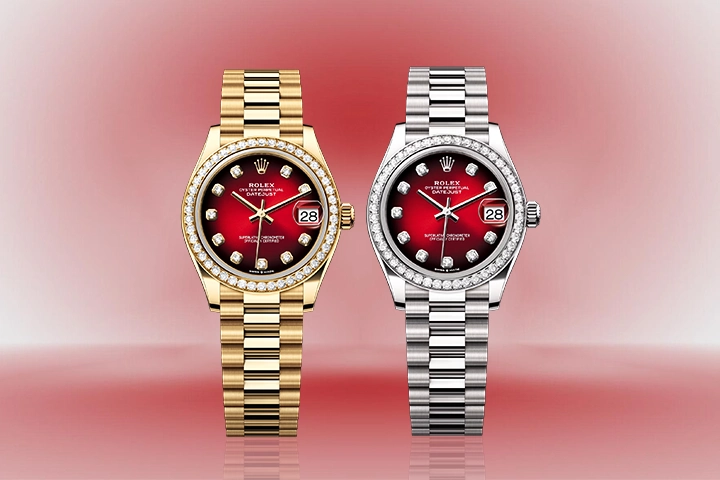 Joining the trail of Rolex Watches and Wonders 2025 releases is this fiercely elegant Datejust number. The Oyster Perpetual Datejust 31 introduces a bright red ombré dial, further enhanced by a ring of sparkling, brilliant-cut diamond markers. Unlike other traditional ombré dials, this one is PVD-coated.