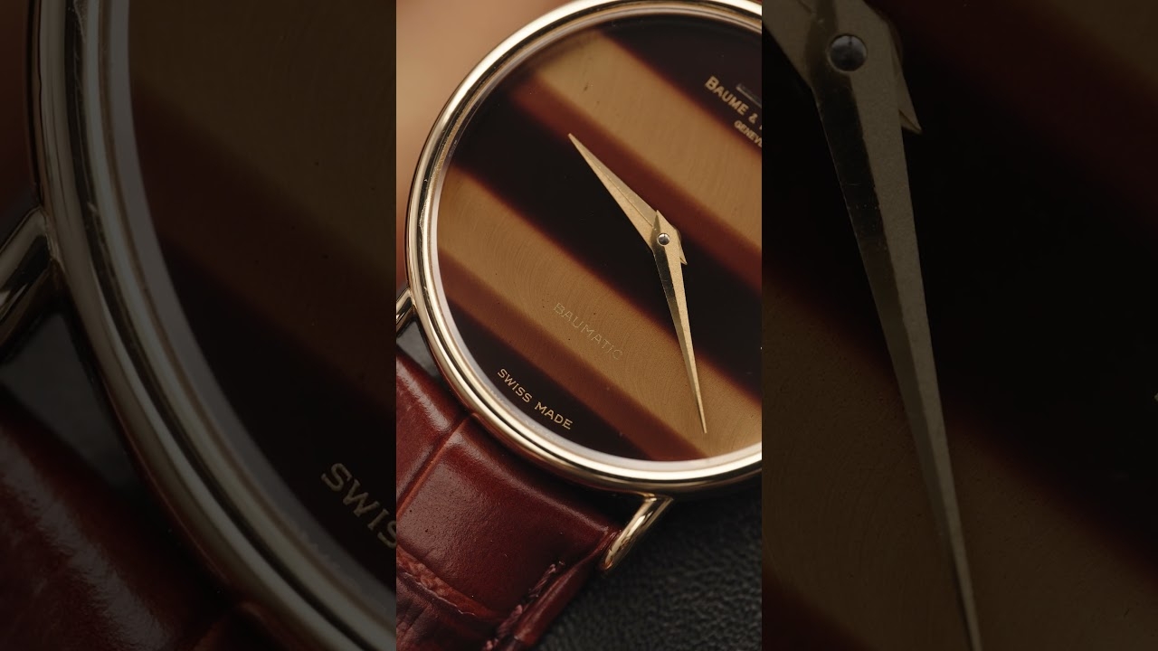 Baume & Mercier 'Tiger Eye Dial' Watch 18ct Yellow Gold - Leather Strap