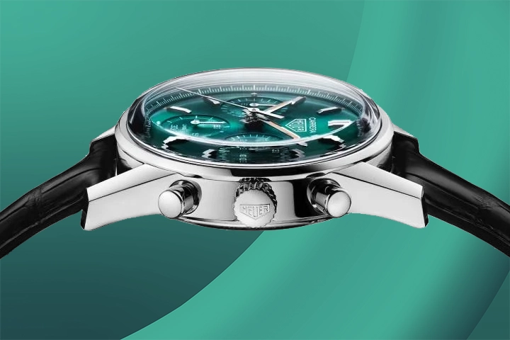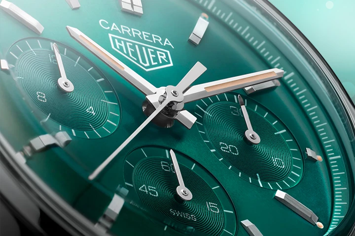 Green is undoubtedly the colour of the moment in the luxury watch industry. Although many watchmakers have used different shades of green, the majority of these hues have either yellow undertones or a neutral base. Blue-green dials, as used by TAG Heuer, are comparatively rare, making this modern iteration even more unique.