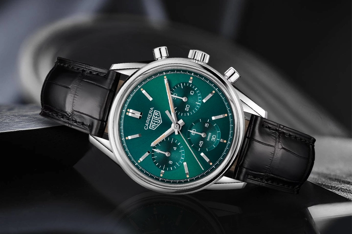 The new Green Dial Special Edition Carrera has a round vintage 2447 Carrera-inspired 39mm stainless steel case that is 3mm wider than the original model, fulfilling the requirements of modern watch buyers. With its slender bezel and elongated, angled lugs, the watch exudes a refined look.